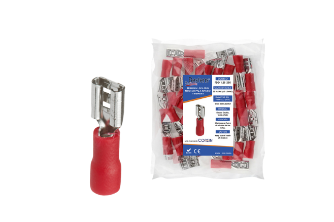 Terminal tipo hembra 1.25-110 en PVC rojo.