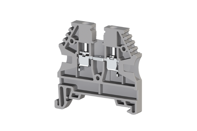 Terminal modular para montaje en riel DIN (tipo caballete) diseñada para conductores de 2.5 mm². Facilita la organización y conexión rápida en tableros de control.