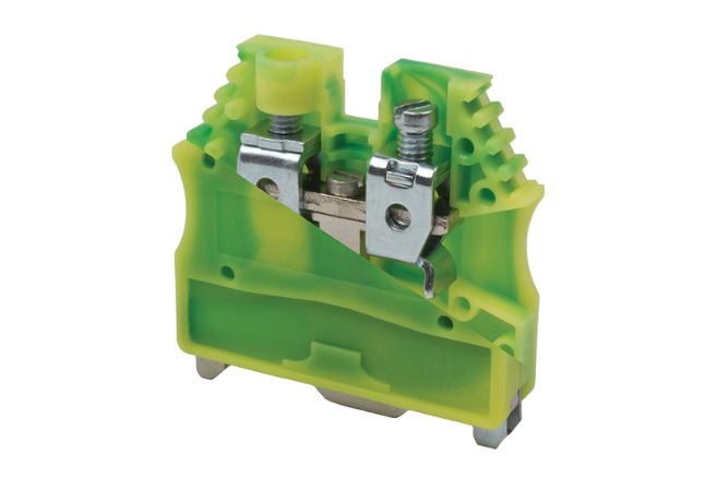 Terminal de puesta a tierra diseñada para conductores de 6 a 10 mm², pensada para instalaciones que requieren mayor sección de conductor de protección y una conexión robusta.