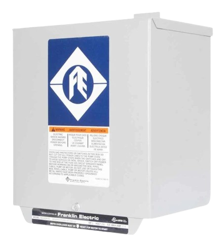 Panel de control diseñado para motores sumergibles monofásicos Franklin Electric de 3 hilos. Ofrece arranque confiable y protección para tu sistema de bombeo.