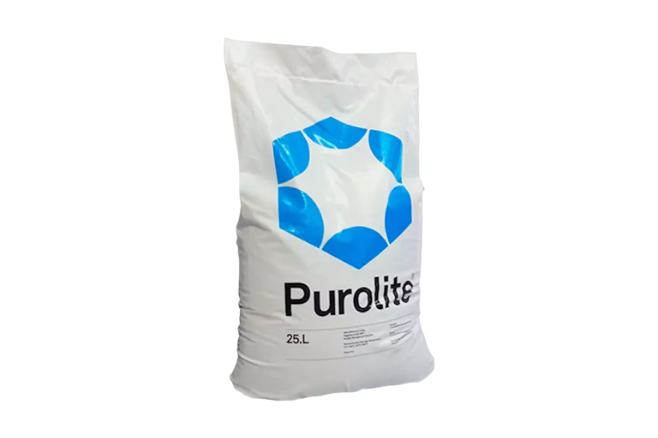 La Purolite C120E es una resina catiónica de ácido fuerte con grupos sulfónicos, utilizada en el ablandamiento de agua potable y en el tratamiento de agua destinada a procesos de alimentos y bebidas. Su estructura de poliestireno gel reticulado con divinilbenceno (DVB) le otorga una alta capacidad de intercambio iónico, excelente regeneración y resistencia térmica.