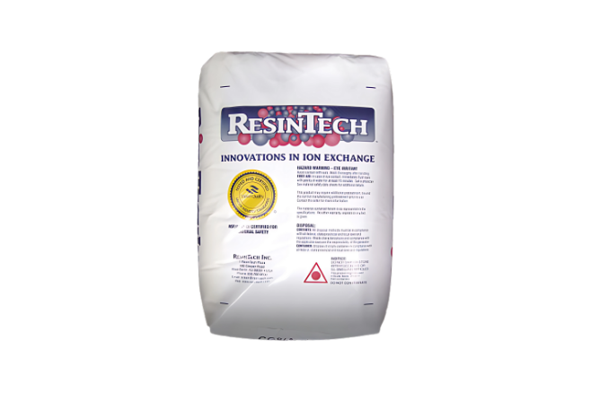 Saco con resina catiónica ResinTech CG8 (presentación estándar en volumen de resinas).