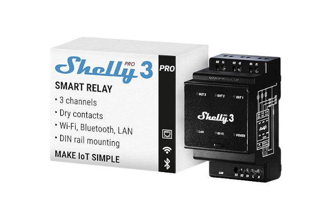 El Shelly Pro 3 Smart Relay está diseñado para el control inteligente de hasta tres circuitos eléctricos independientes, ofreciendo una solución robusta y segura para aplicaciones residenciales, comerciales e industriales. Gracias a su conectividad WiFi y Ethernet, permite la gestión remota o local de dispositivos, integrándose fácilmente en sistemas de automatización avanzada.