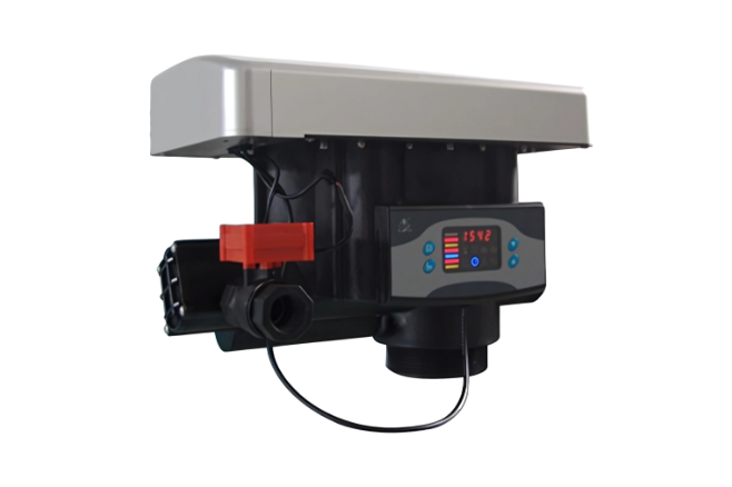 La válvula automática F77A3 está diseñada para el control de suavizadores de agua de gran capacidad, con un caudal máximo de 79 GPM y conexiones de entrada y salida de 2″. A diferencia de las válvulas por tiempo, este modelo opera por volumen (caudal): mide el agua tratada mediante un medidor incorporado y activa la regeneración únicamente cuando se alcanza la capacidad establecida. Esto optimiza el uso de sal y agua, adaptándose al consumo real del sistema.